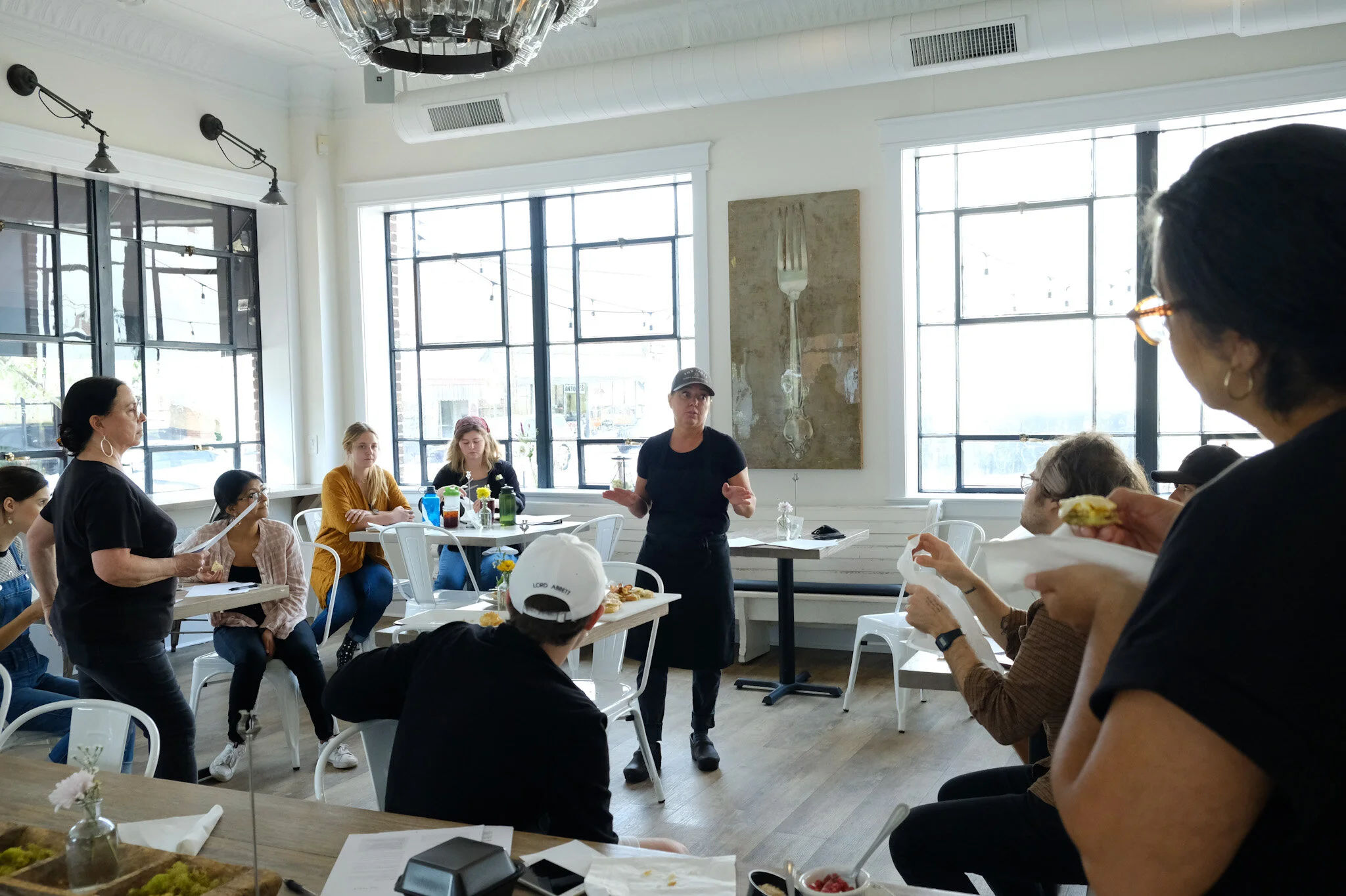 Chef Deanna breaks down the fall menu for the staff at a tasting